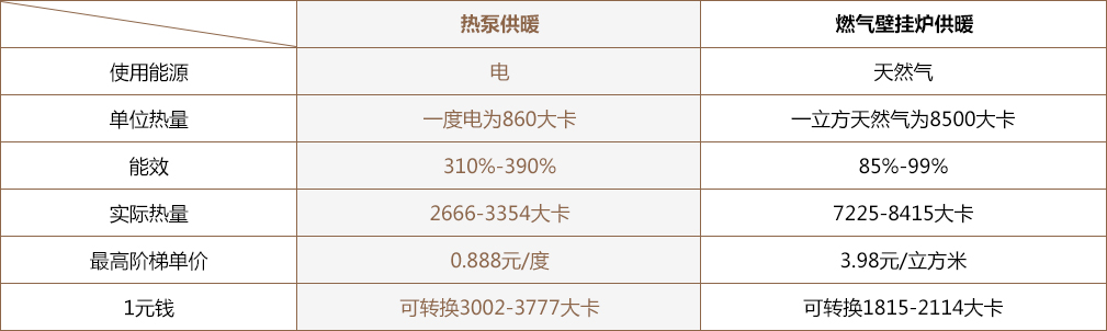 综合比较,“热泵供暖”比“壁挂炉供暖”使用费用可节省30%-50%
