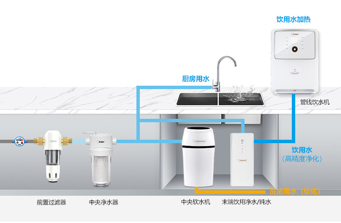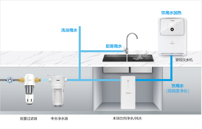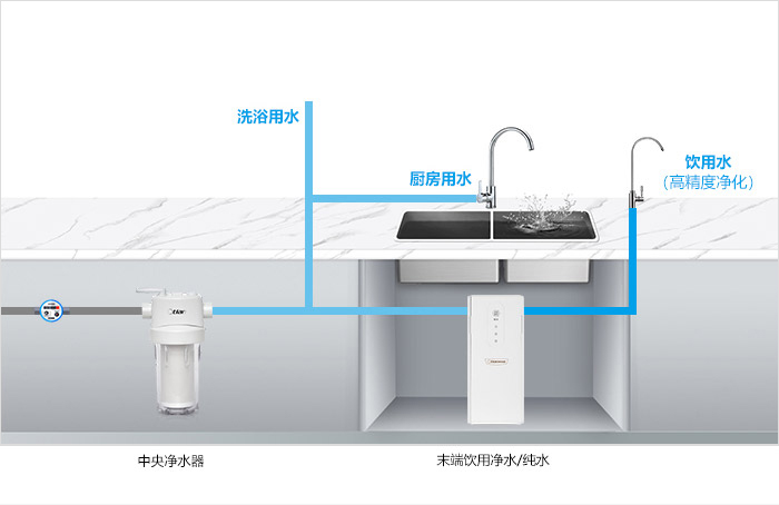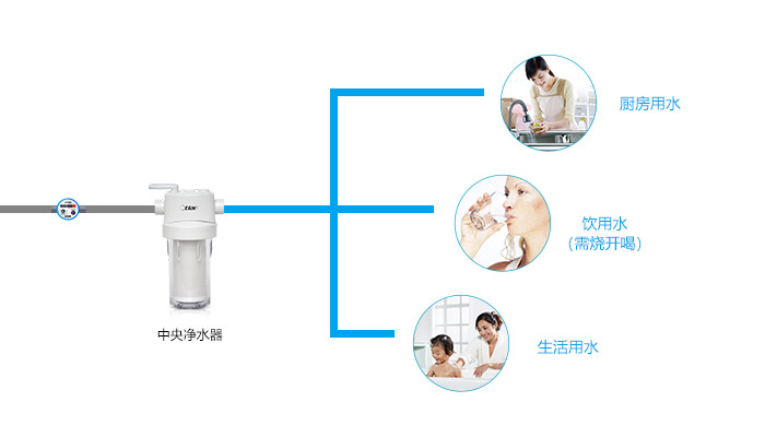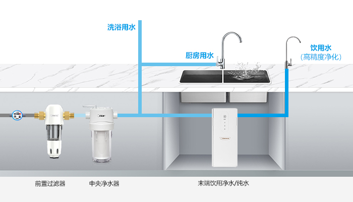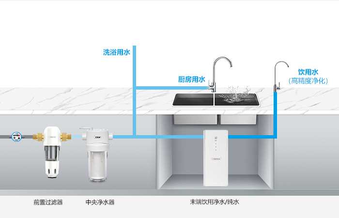 去除颗粒杂质、余氯、部分化合物和重金属,保证了洗漱、厨房、生活用水安全。