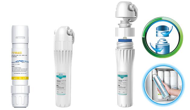 相比第二代的插管一体滤芯(韩式滤芯),第三代的卡接一体滤芯的优势在于:滤芯和滤瓶分体,可以打开,观察滤芯使用状态,以便合理更换;更换滤芯不更换外壳,成本低。