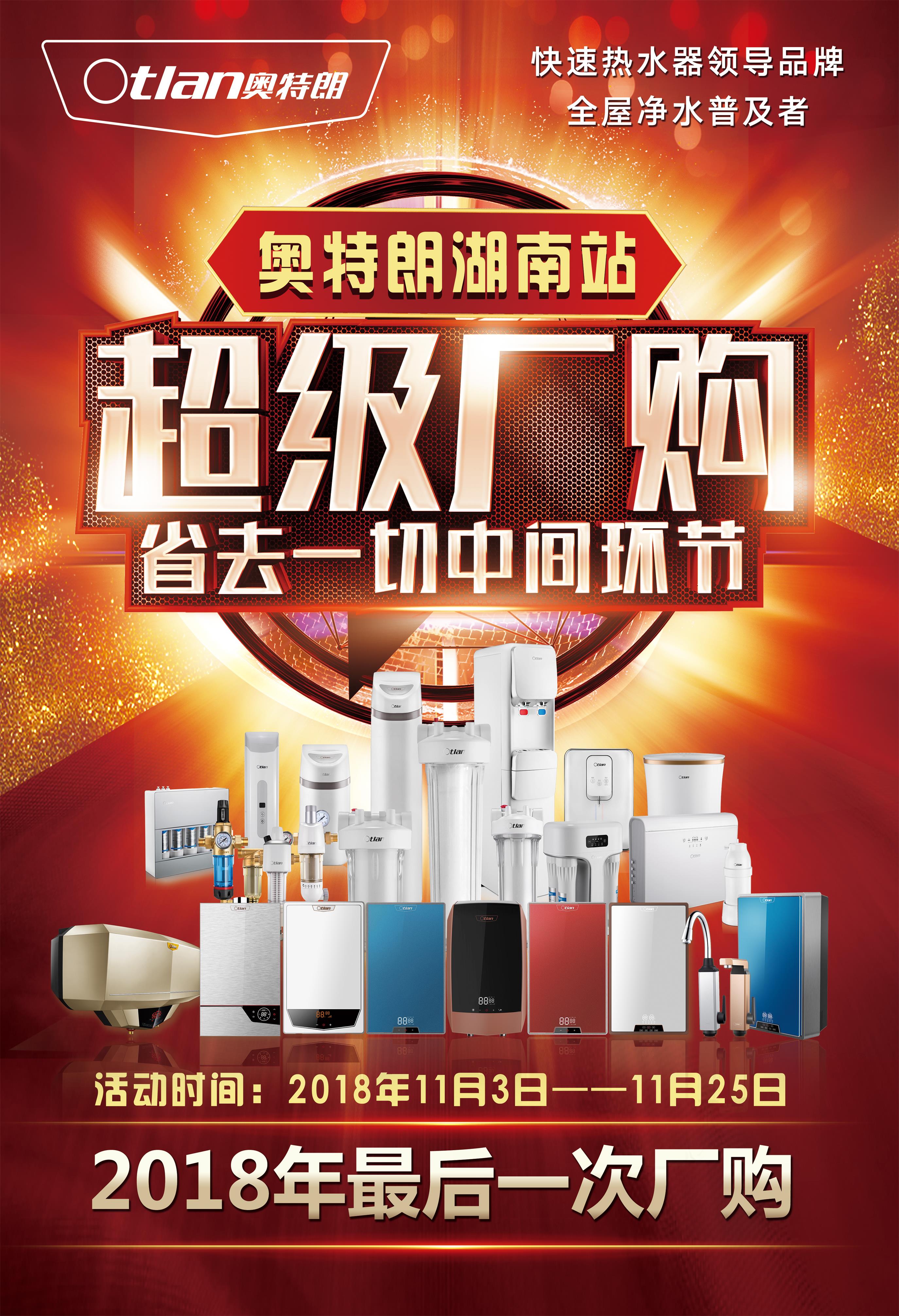 2018年关将至,奥特朗热水器总部联合净水器总部,组织湖南省五个地方(长沙、益阳、常德、郴州、张家界)代理商,在全国率先启动了省区超级厂购活动!