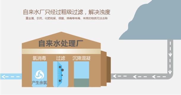 自来水厂只经过粗级处理,解决浊度。重金属、农药、化肥残留,细菌、铁锈等有毒、有害的物质却无法去除。